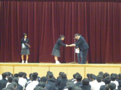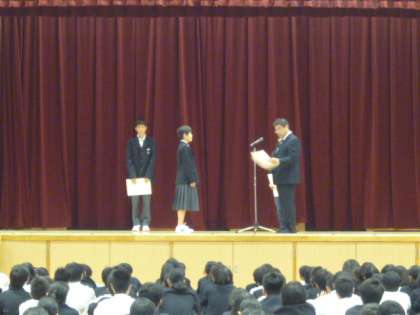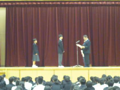 全校集会の後、表彰がありました。