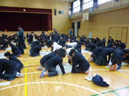 上の句を読みはじめると、あちこちで「はい」「はい」と元気な声が聞こえています。