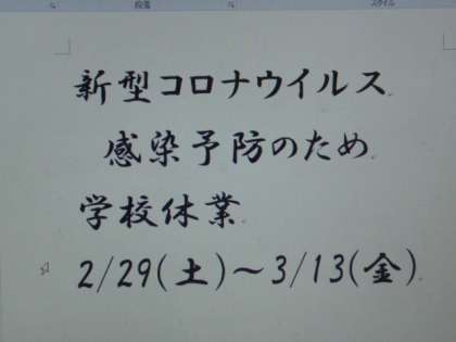 なお新型コロナウイルスにつきましては、日々状況が変化しているため、変更が生じる可能性かあります。その折は改めてお知らせします。