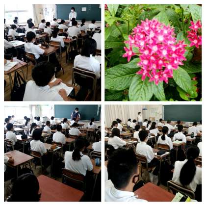 今日8月25日、放送による始業式を行いました。夏休みが終わり、学校生活が始まります。生徒たちは姿勢を正して、教室で校長先生のお話を聞きました。