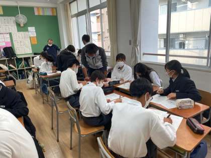 校外学習では、各班で訪問施設を決め、地下鉄を利用し、班別行動を行います。訪問施設を決めるにあたり、班長が事前調べを行い、プレゼンをしていきます。