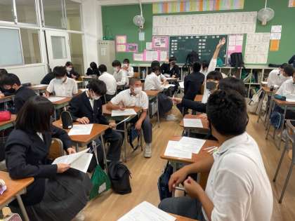 11月に予定している校外学習に向けて、各クラスの班長が集まり、全体班長会を行いました。
