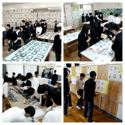今日はアカデミック・デイ。各学年で時間をずらしながら展示の部の見学と映像の部の鑑賞を行いました。たくさんの優れた作品があります。