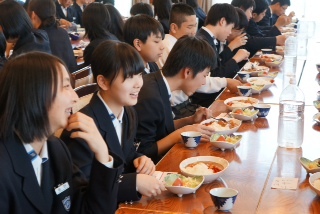 昼食です。ラフティング体験にむけて、しっかり食べています。