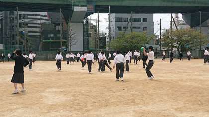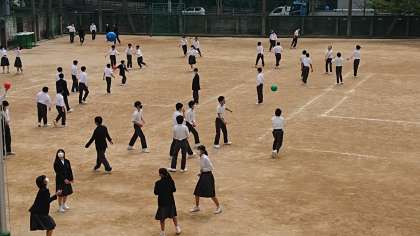 限られた時間ですが、友だちと運動場で楽しんでいます。