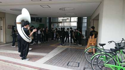 今日の仮入部のようすです。吹奏楽部は1年生の下校を先輩たちが見送っていました。