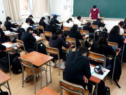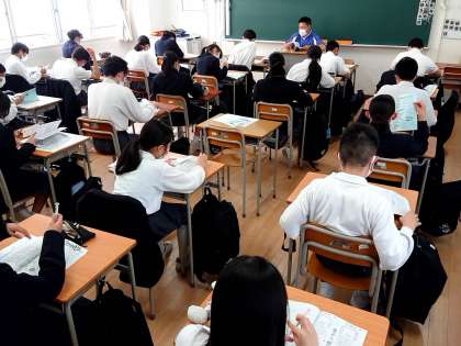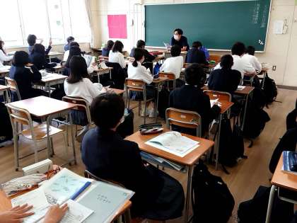 担任の先生の説明をメモをとるなど真剣に聞いています。