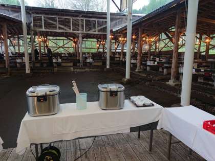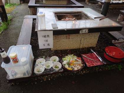 バーベキューの準備をしていただいています。