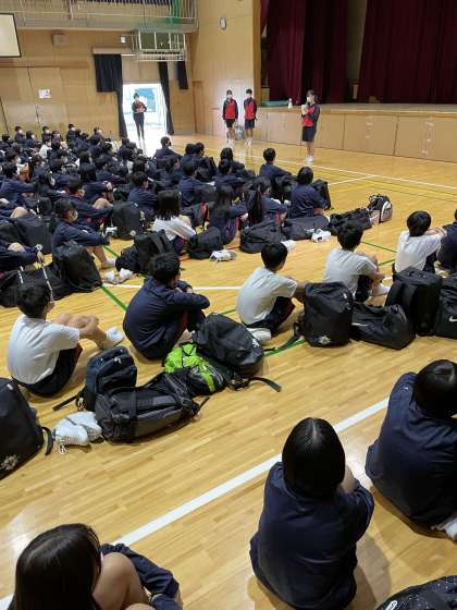 出発式をしました。教頭先生のあいさつ、生徒代表のあいさつ、諸注意、カメラマンの紹介をしました。