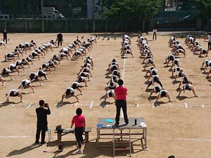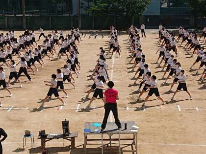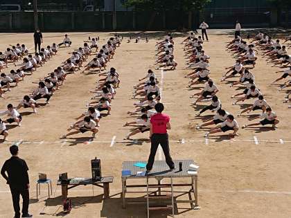 次に、グランドで3年生演技「ソーラン」の練習をしました。