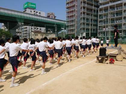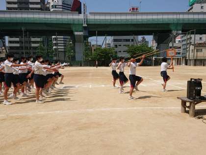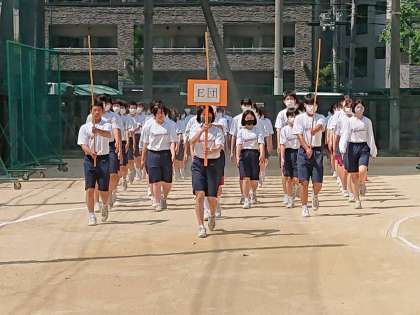 入場行進、開会式・閉会式、応援合戦の練習をしました。