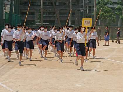 入場行進、開会式・閉会式、応援合戦の練習をしました。