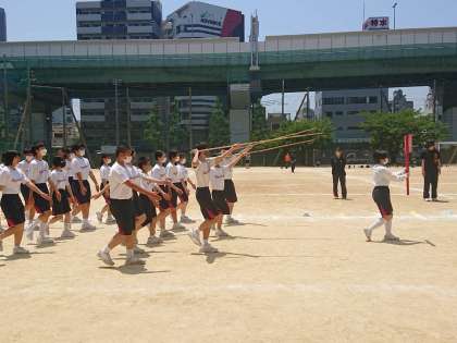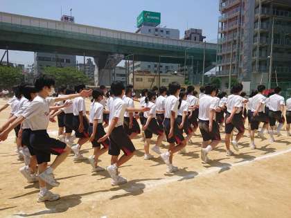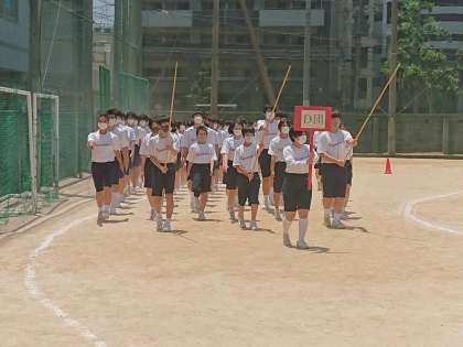 入場行進、開会式・閉会式、応援合戦の練習をしました。