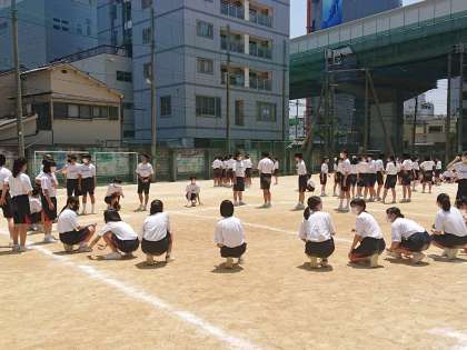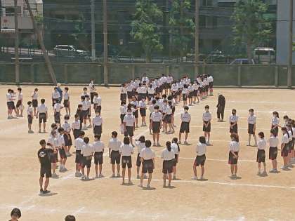 入場行進、開会式・閉会式、応援合戦の練習をしました。