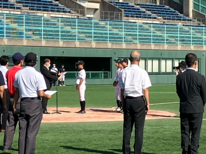 決勝戦の対戦校は中野中学校。初回に立ち上がりを攻められて2点を先行させる展開に。3回に相手のエラーをきっかけに同点に追いつき、5回にも相手のエラーで1点を勝ち越しました。6回にも2点を追加することができました。投手も背番号5→背番号3→背番号9の継投で相手の攻撃を初回の2点に抑えて勝利、優勝することができました。