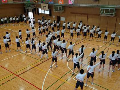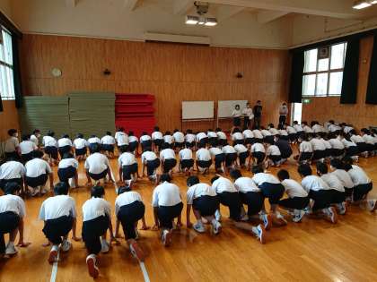 今日の団別練習は、昨日の雨で運動場の状態が良くないため、体育館や格技室を利用しました。