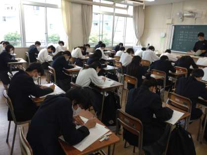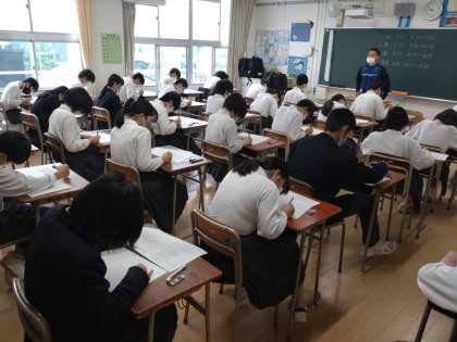 生徒たちはテスト直前までノートやプリントを見直していました。