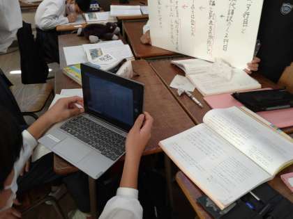 学習者用端末を活用し、「なまボード」にまとめた班の意見を保存しました。