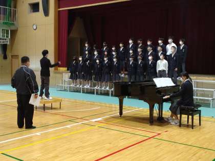 3月16日に開催する「合唱コンクール」にむけて、今日は1組・3組・5組の皆さんが、体育館と音楽室と教室でローテーションを組んで練習を行いました。