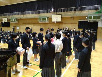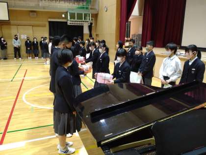 3年生の皆さん、後輩たちの心のこもった記念品うれしいですね。