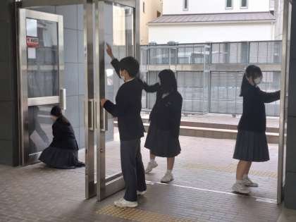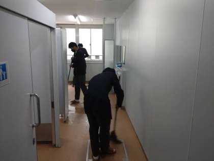 卒業式前日の会場準備・清掃 2年生