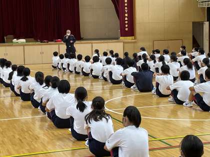 5.6時間目に2年生の3クラスの生徒が、救急救命について学びました。消防署の協力のもと、救命に必要なことを