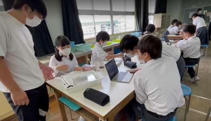 「身のまわりの物質」の単元を学習しています。今日の授業では、密度から物質を特定する実験をしました。学習者用端末(ノートパソコン)を使って、測定結果を共有しました。