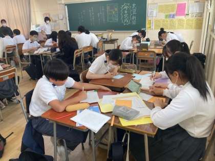修学旅行のまとめとして活動班で大豆新聞を作りました。
