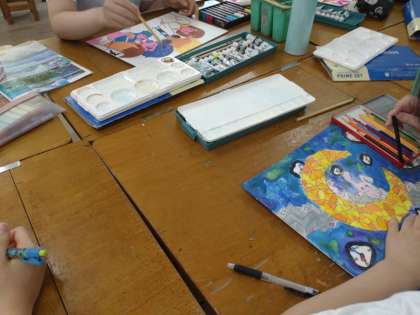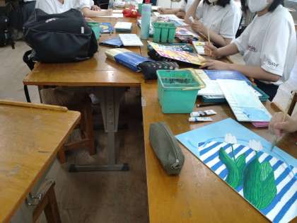 ・絵画、写真コンクール テーマ「躍動感」作成している生徒