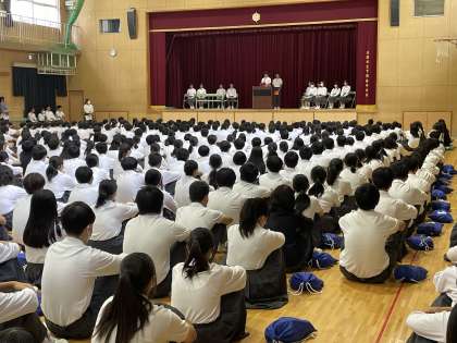 立会演説会では、立候補者と応援演説者が生徒会活動についての熱い思いを語りました。真剣に演説を聞いた後、教室に戻り投票しました。