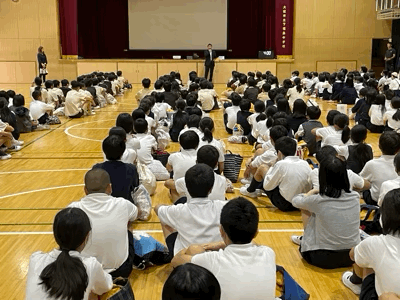 生徒会役員の司会・進行をしました。校長先生と生徒会長のあいさつの後、部活動紹介と授業体験をしました。