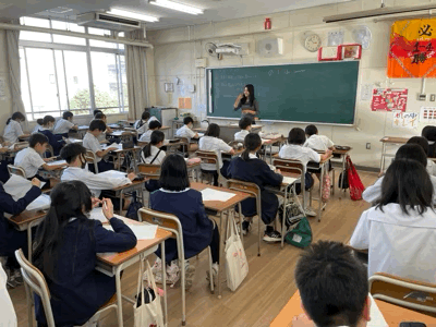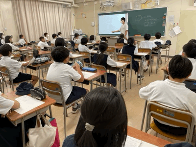 授業体験では、中学校の教室で数学、理科、社会、英語の授業を受けました。