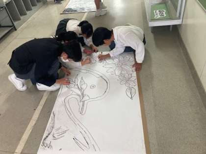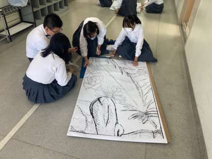 10月末のアカデッミックディに向けて学年制作の壁画作りが進んでいます。