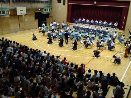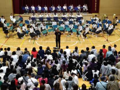 写真は本校PTA会長様の開会宣言と、本校吹奏楽部による演奏です。迫力のある素晴らしい演奏でした。