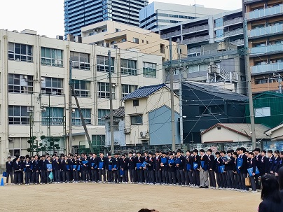 卒業生より3年生の先生方へ感謝の気持ちを込めての合唱をおくりました。