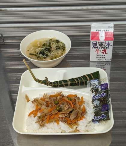 きんぴらちらし きざみのり すまし汁 ちまき ごはん 牛乳