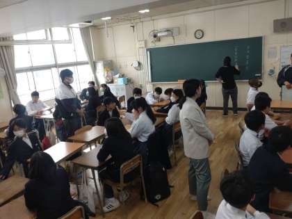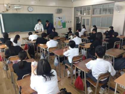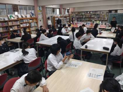 はじめに、各委員会の仕事内容について話があり、自己紹介や生徒議会に出席する代表決めを行いました。