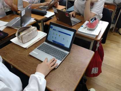 今日は1・2年生の復習を、学習者用端末を活用して学習しました。