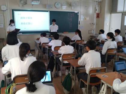 授業の最後に、発表を聞いていた生徒の感想を共有しました。