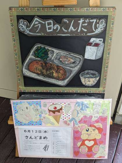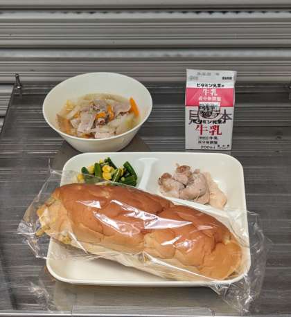 鶏肉のガーリック焼き スープ さんどまめとコーンのサラダ