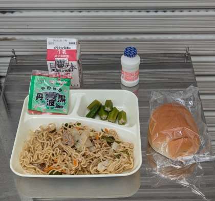 和風焼きそば オクラの甘酢あえ ソフト黒豆 発酵乳 ミニコッペパン 牛乳