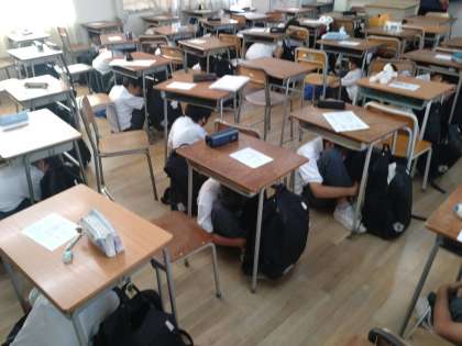 本日、大阪府下全域において『大阪880万人訓練』が行われ、本校も『訓練』を行いました。