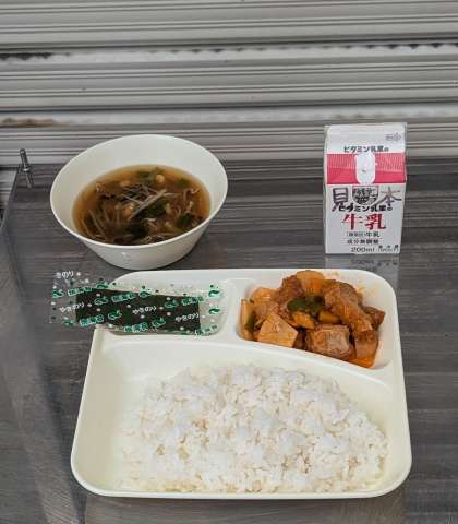 酢豚 中華みそスープ 焼きのり ごはん 牛乳