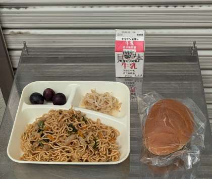 オイスターソース焼きそば もやしのしょうがづけ ぶどう(巨峰)