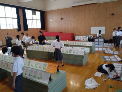 学年、教科、部活動、すまいる学級など、それぞれが作成した作品の展示などをしています。