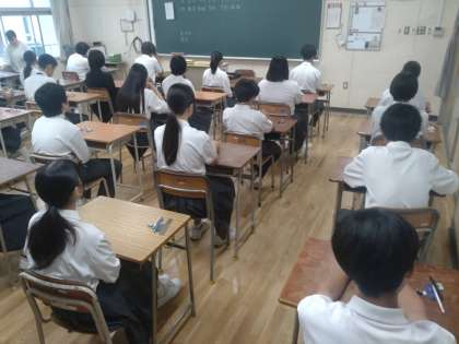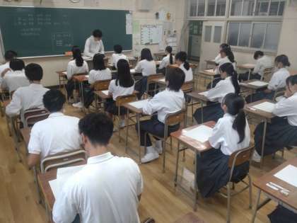 写真は1時間目の直前の3年生の様子です。自身の進路選択に向けての気合が伝わってきます。