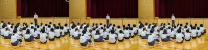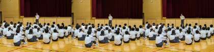 写真は9月30日の放課後に行われた体育大会結団式の様子です。実行委員長や各団の代表者がしっかりと抱負を述べてくれました。実行委員を中心に、生徒全員の力でアカデミック・デイに続いて体育大会も成功させましょう!