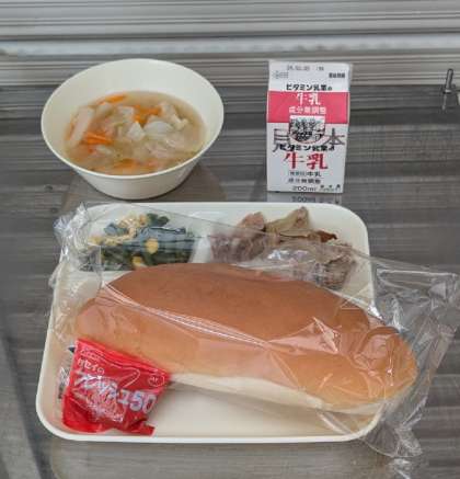 さんどまめとコーンのソテー コッペパン 牛乳 いちごジャム