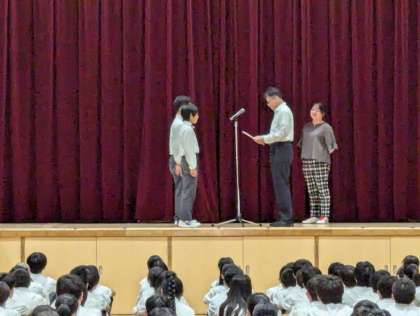 また、今日の集会でも表彰がありました。令和6年度大阪市中学生ソフトテニス大会において、男子個人の部で第3位という優秀な成績を収めました。おめでとうございます!