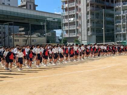 本日の5・6限、体育大会の全体練習を行いました。10月としては気温の高い中、行進や開閉会式、団演技の練習など、生徒のみなさんの熱い思いが伝わってきました。明日の予行、そして当日に向けて、さらにレベルアップをめざしてくださいね。